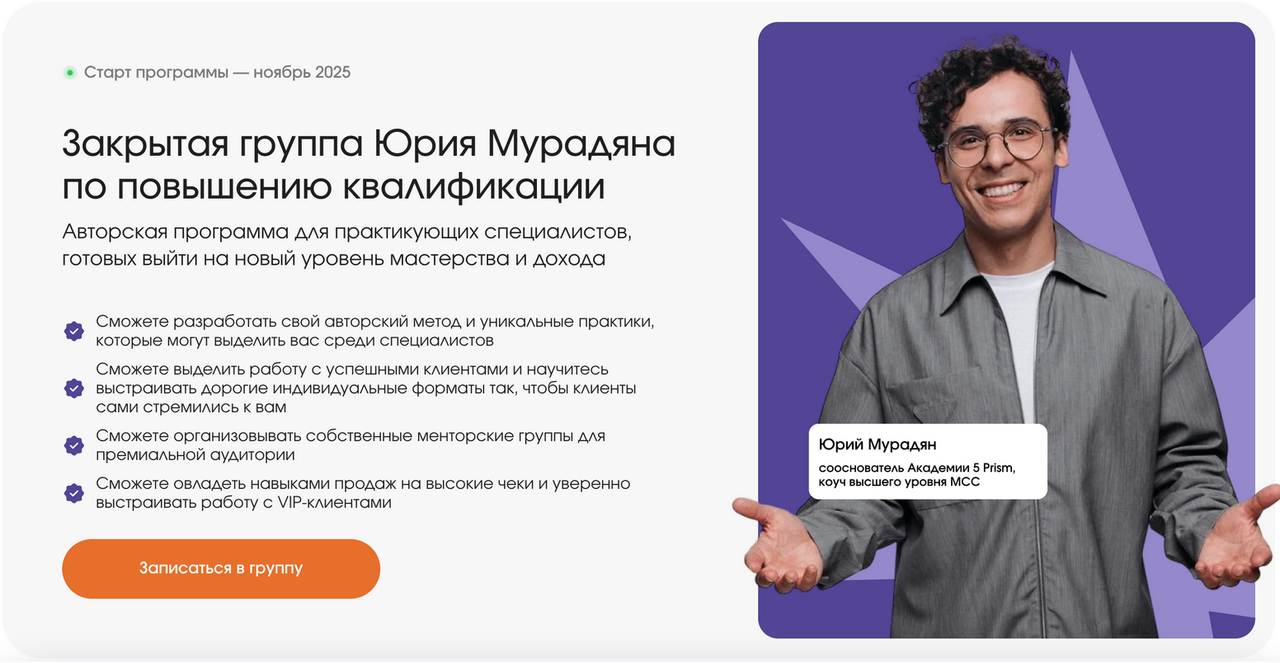 [5 Prism] Закрытая группа Юрия Мурадяна по повышению квалификации 2025. Тариф Продвинутый [Юрий Мурадян]