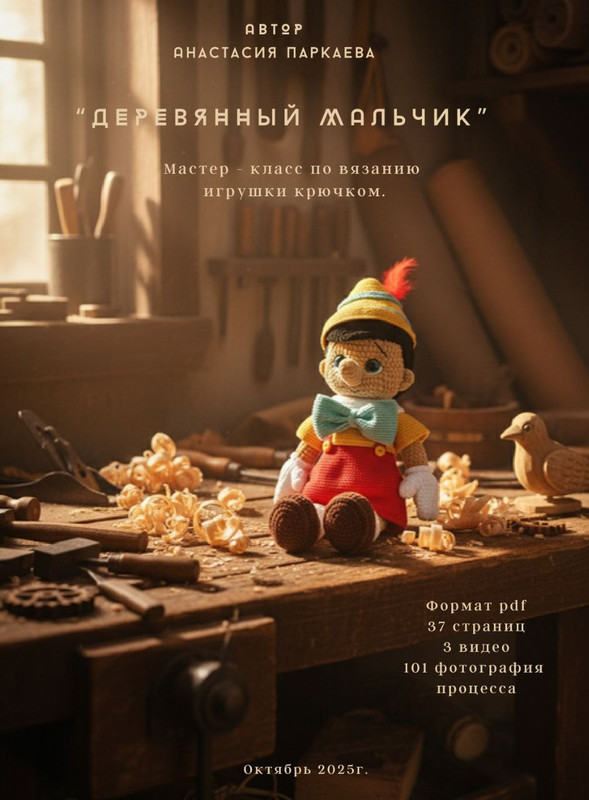 Вот сидит перед вами маленький пиноккио,Чуть смешной, чуть неуклюжий, будто ветер осенний.Ниточки стежком косым завязаны узлы —Доверчиво глядят глаза игрушки простодушной.Сшит руками мастерицы нежною иглой,Приглашает взглядом ярким стать героем сказки той.Подмигнёт хитро деревянной кнопочкой носа,И захочется вернуться снова в детство снова.Не кукла даже, друг — мудрый наставник твой,Знает всё про верность дружбе, доброту и покой.Пусть погладите пушистого своего питомца,Вместе будем плести историю волшебных открытий.