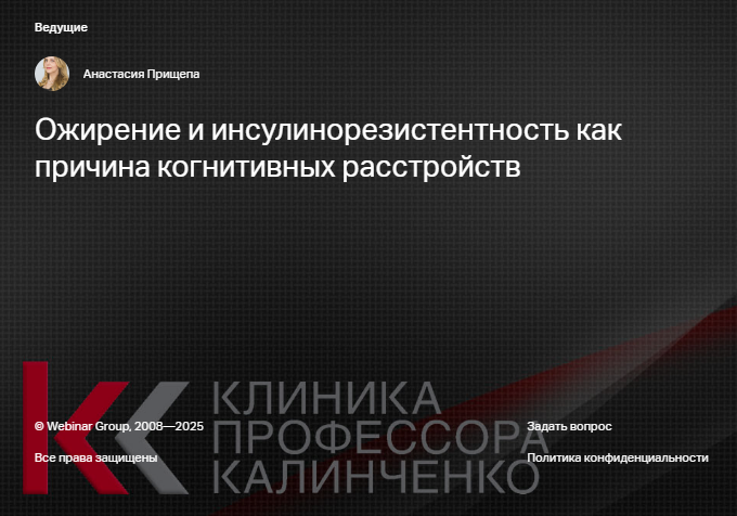 [Клиника профессора Калинченко] Ожирение и инсулинорезистентность как причина когнитивных расстройств [Анастасия Прищепа]