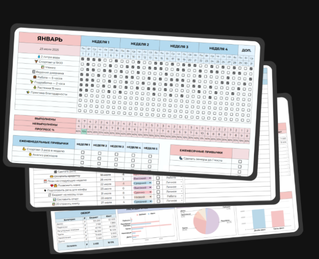 Создайте систему привычек, задач и бюджета с нашими планерами в Google Sheets.