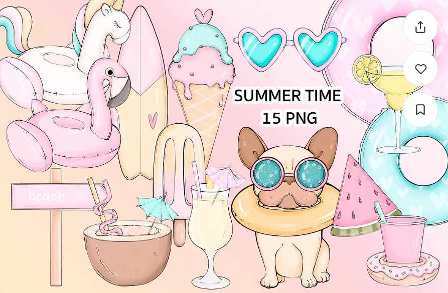 [Palmpink Illustrations] Набор иллюстраций Summertime Clip art [Дарья Львова]