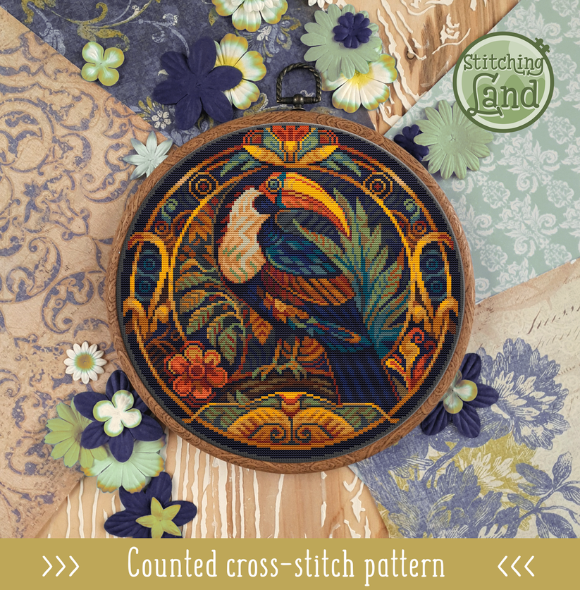 Схема вышивки крестом «Тукан в стиле модерн» [Stitching Land]