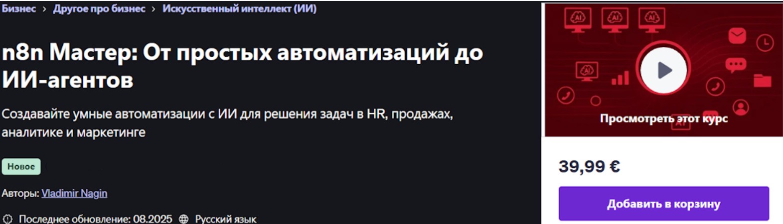 [Udemy] n8n Мастер: От простых автоматизаций до ИИ-агентов [Владимир Нагин]